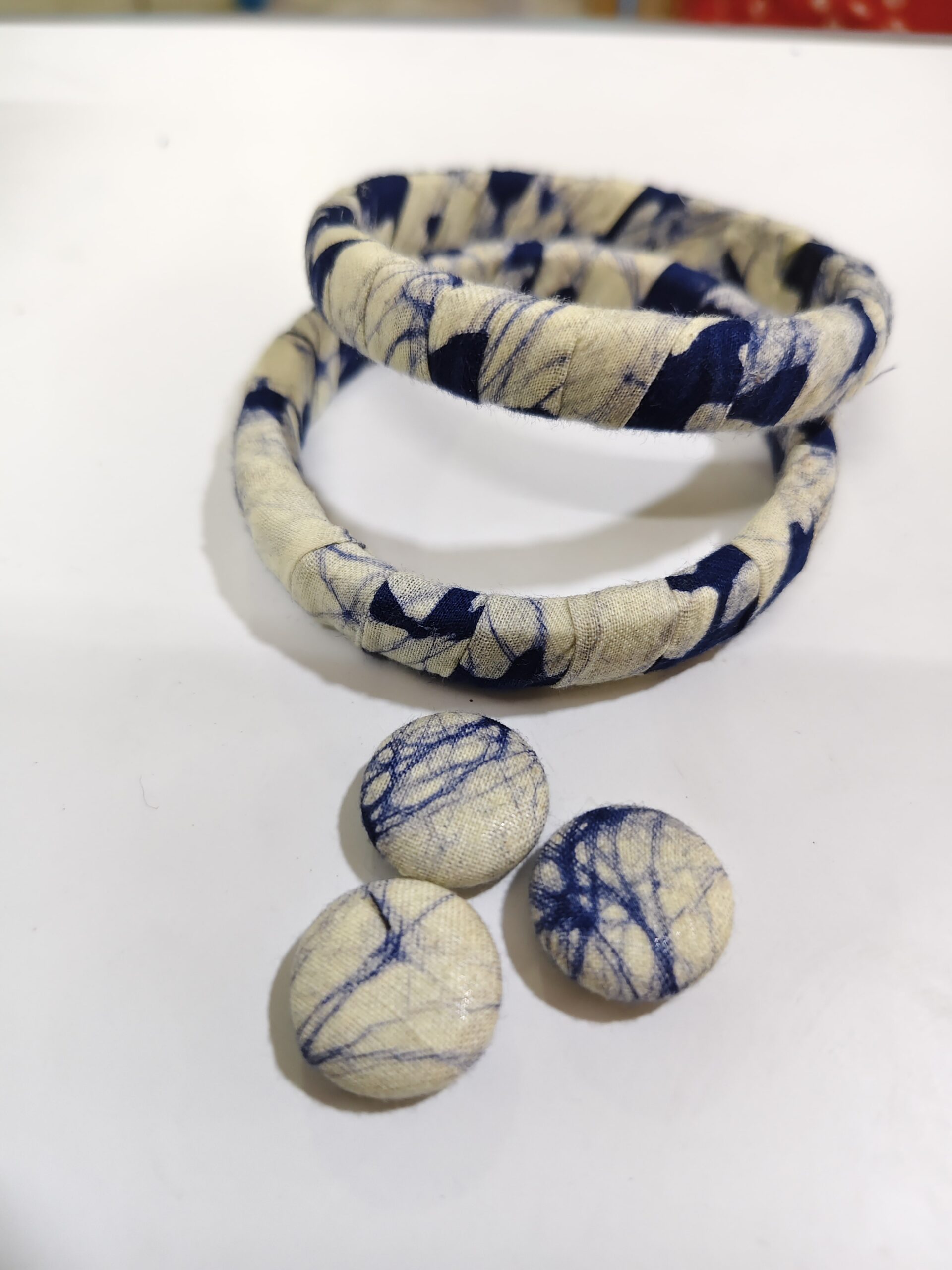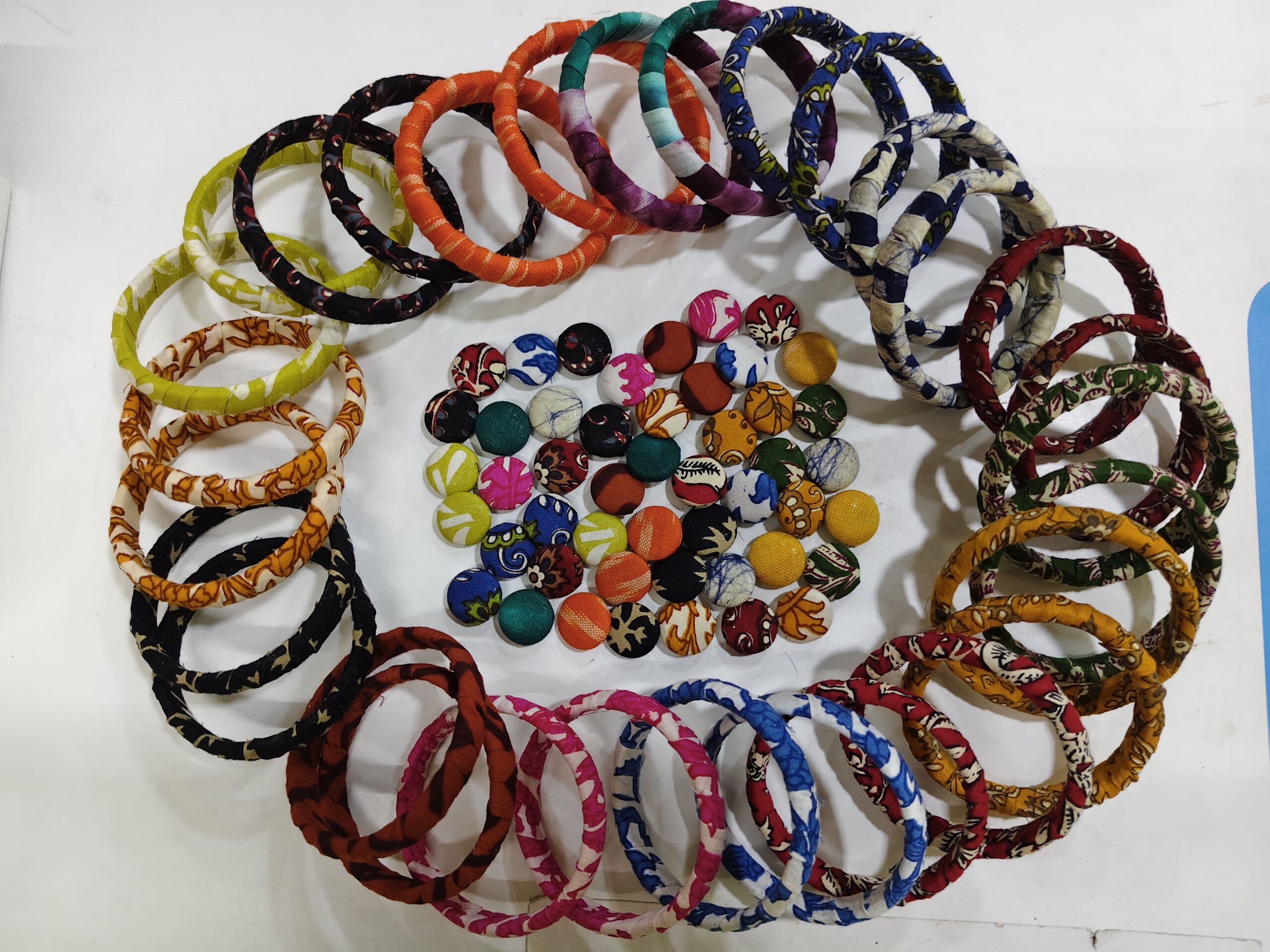 Add a touch of charm and sustainability to your look with our handcrafted fabric bangles. Made from eco-friendly fabric scraps, these lightweight and comfortable bangles are perfect for daily wear, festive styling, or gifting. Each piece is unique, reflecting our commitment to creativity and conscious fashion.